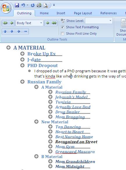 I’ve recently found a great new way to organize my material and I thought I’d share it. (You’ll need Microsoft Word for this, although other programs might have a similar feature.)