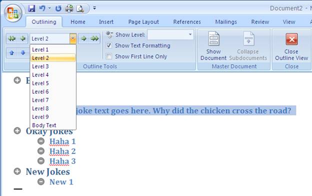 3 Replies to “Organizing Jokes Using Microsoft Word Outline View”