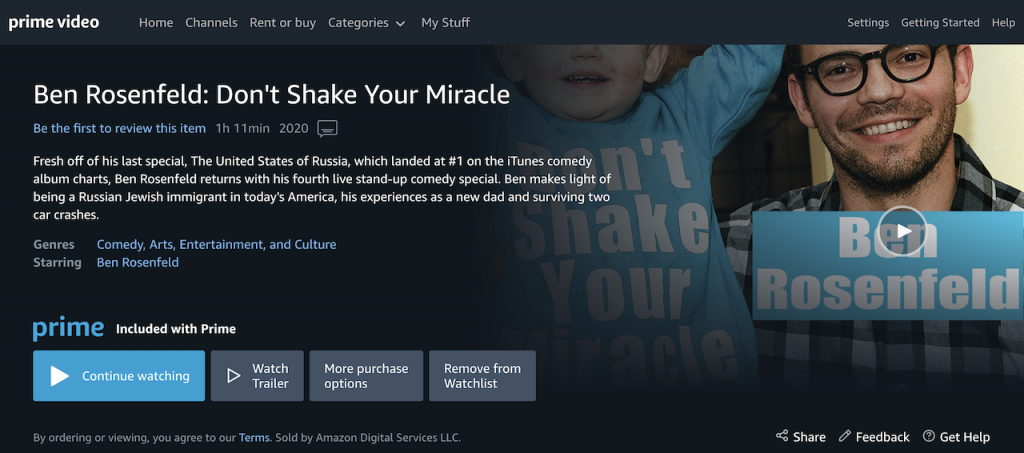 I’m thrilled to announce that my latest comedy special, Don’t Shake Your Miracle is now available on Amazon Prime as a streaming video.